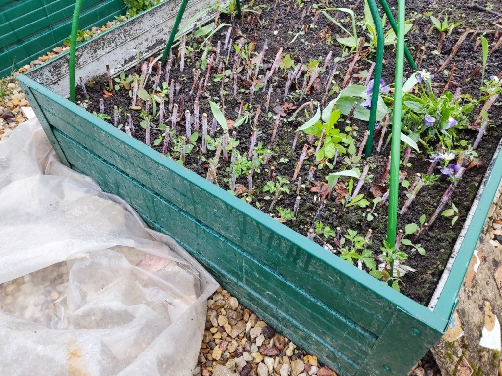 Шквалистый ветер сорвал укрытие с моего парничка на грядке. У меня там черенки черной малины, золотистой смородины и желтого пиона.